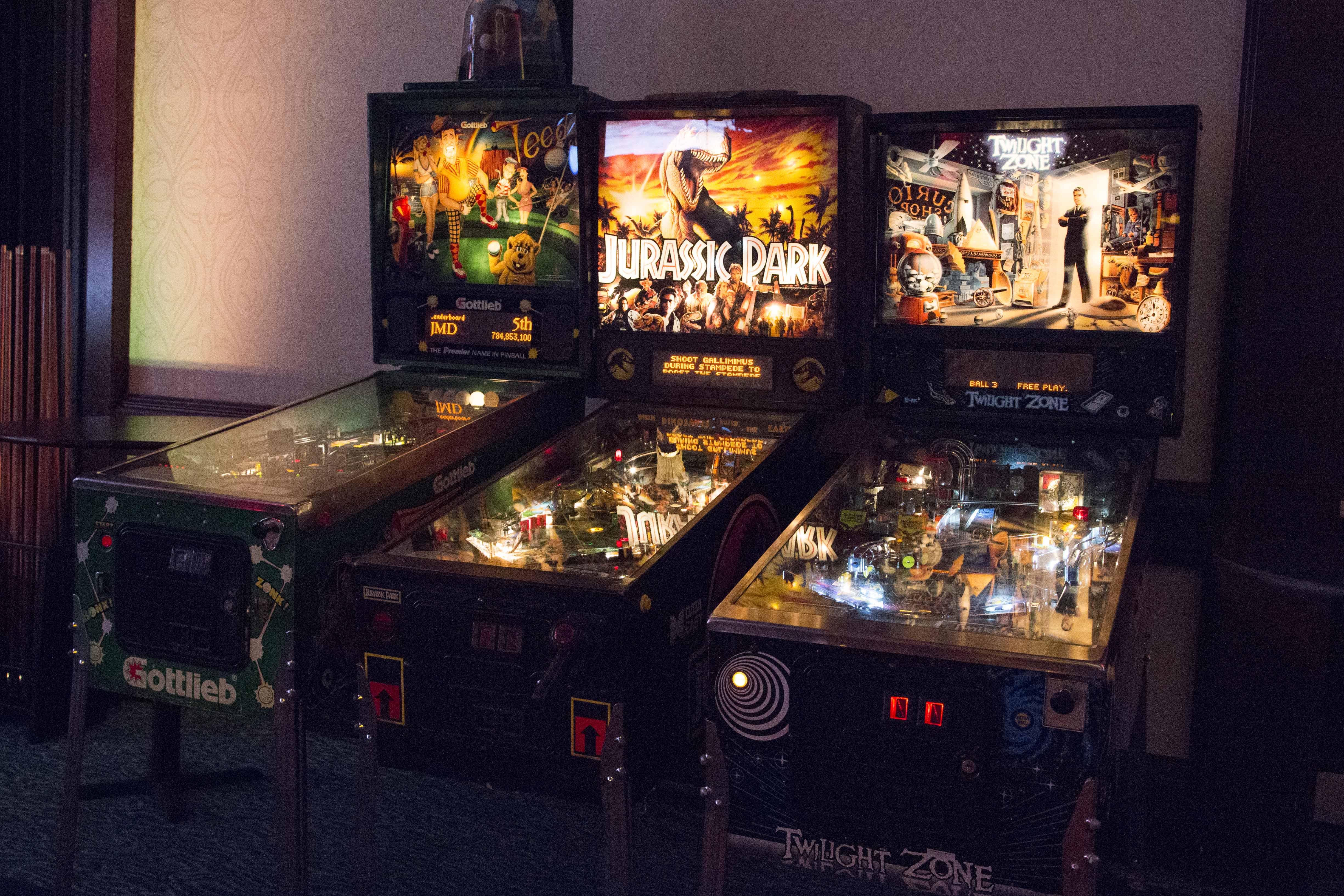 Dive Bar Theme: Arcade games throughout the space framed the stage. Attendees could still enjoy the band from wherever they were in the venue